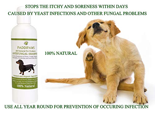 Paddipaws Antifungal & Antibacterial Dog Shampoo, 100% Natural Skin & Coat Care Shampoo for Itchy Dogs, Yeast, Ringworm, Dermatitis & Pyoderma, Paraben & SLS Free 250ml