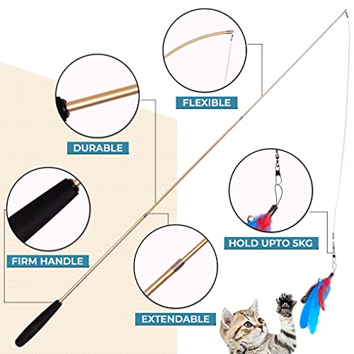 MANUFACTURED FOR SAFTEY – Many interactive cat toy fail simple safety checks in standard playtime tests; Our rods are durable, flexible and extendable with firm handles that can hold up to 5kg weight