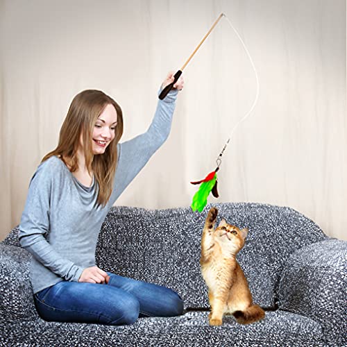 NO MORE TANGLED CAT WAND – Suitable for ages 8 weeks and up; Our cat wand is made of strong tangle-resistant plastic for safety; Crafted with natural feathers complete with extra replacement hook line
