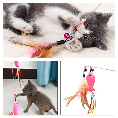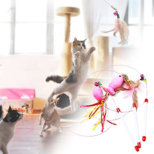 yueXinCh 3 Pcs Cat Toy Feather Wand Cat Teaser Toys Feather Wand Cat Pet Toy for Kitten Cat Having Fun Exercise Playing, Multicolour