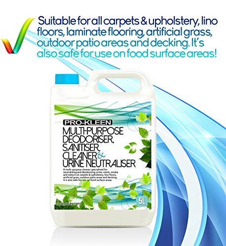 ✓ SUITABLE FOR: Carpets & upholstery, lino floors, Laminate flooring, artificial grass, outdoor patio areas and decking. It is also safe for use on food surface areas
