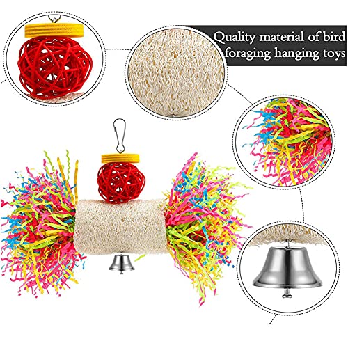 6 Pack Bird Shredding Toys,Parrots Chewing Hanging Toys,Bird Cage Accessories Parrot Cage Shredder Toys,Station Stick Foraging Toys for Small Parakeets Love Bird Cockatiel Finch Conures
