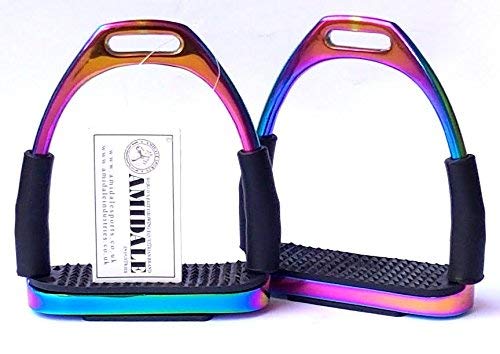 Amidale RAINBOW FLEXI SAFETY STIRRUPS HORSE RIDING BENDY IRONS S. STEEL BNWT 4.75 INCHES