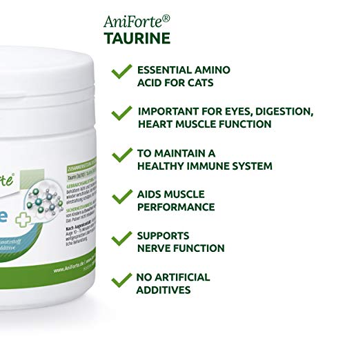 ENSURES HEALTHY SUPPLY OF TAURINE: The quantity of taurine is insufficient in many ready-made pet foods, because it is largely broken down during the heating process in the production of the food. AniForte’s Taurine Powder Cat provides essential amino acids that balance the daily needs of your pet and can also support numerous metabolic and organ functions.