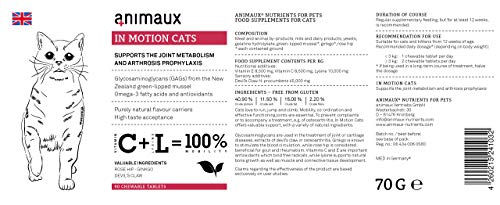 animaux in Motion Cats – 90 chewable tablets – Supplement for cats, with green-lipped mussel, devil’s claw, collagen, supports bones, joints & cartilage