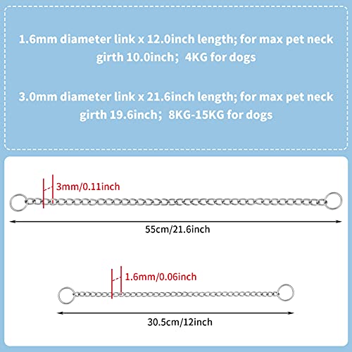 Two Sizes: You will get 2 pieces dog choke collars with 2 different sizes, the small dog collar is 12 inches long, suitable for dogs within 4kg,10inch max neck circumference; The bigger dog collar is about 21.6 inch length, suitable for dogs within 8-15kg, 19.6inch max neck circumference.