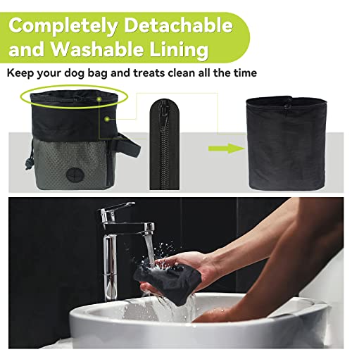 Completely Detachable and Washable Lining–Our dog pouch designed with a zipper for the main pocket lining. You can easily take the lining bag apart from dog treat pouch to wash by unzipping it. Make your dog keep healthy by keep your dog bag clean all the time.