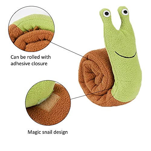 đ ăTraining Dog Foraging Skills and Puzzlesă: The toy can hover into the shape of a snail. It is fixed by the Velcro on the snail shell and the Velcro on the neck of the snail, so it is not easy to disperse. Unfold the toy into a stick shape, with hidden holes for food, and hide some food in the snail shell so that the dog can get food through sniffing and physical exercise. It helps to training their foraging skills and puzzles.