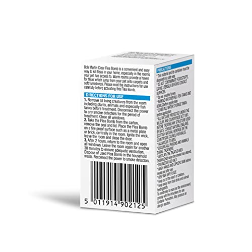 HOW TO USE – Take the flea bomb from the carton, remove the seal and lid. Place the flea bomb on a fireproof surface in the centre of the room and ignite the wick (leave the room and close the door)
