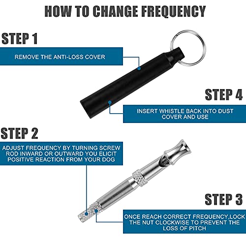 ADJUSTABLE FREQUENCY: The frequency of the whistle can be adjusted.Twist the base of the whistle, as the whistle extends, the frequency gets louder. It may take some trial and error, but eventually, you’ll find the perfect pitch for your dog