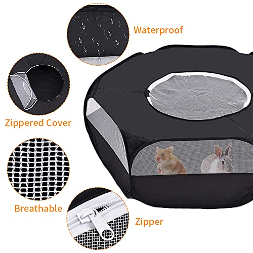 【4 Opening Design】The small animal playpen is with 4 zipper doors, two on the top and two on the side. It is convenient for the entry and exit of animals, and in the meanwhile, you can supplement food and water conveniently. Our pet tent is made from premium polyester fabric, durable and easy to clean.