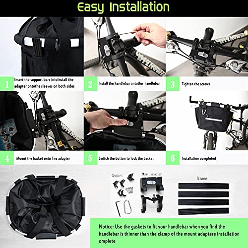 Detachable and foldable: The bike baskets is connected by a quick-release handlebar mounting device. You can easily remove the basket for shopping or other purposes. Remove the support rod and the basket will be foldable, and the thickness is only 2 inches for easy carrying.