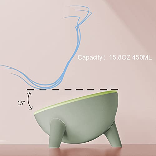 【Double Bowls Design】The capacity of raised cat food bowls are 15.8OZ 450ML.double pet bowl can separate dry and wet food, holding dry food, biscuits, canned and water. The shallow depth, curved bottom, and large beveled edges of the cat bowl accumulate the food in one spot which makes it easier for pets to reach the food while keeping a clean face and prevents cheek fatigue. The large oblique rim reduces food spillage.