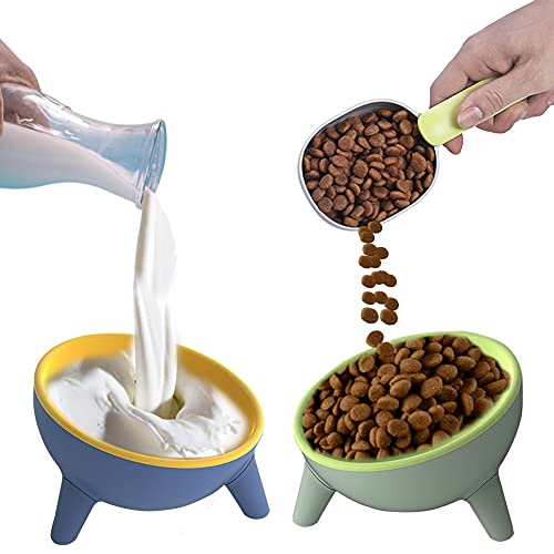 【Double Cat Bowls With Spoon】The complimentary food spoon has a clipping function to act as a seal for the remaining cat food bag for storage purposes or a measuring tool to control the pet’s daily intake to prevent overfeeding and vomiting. perfect for Flat-Faced Cats, persian cat, ragdoll, all kinds of cats kittens and puppy.