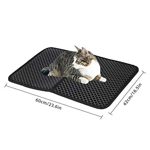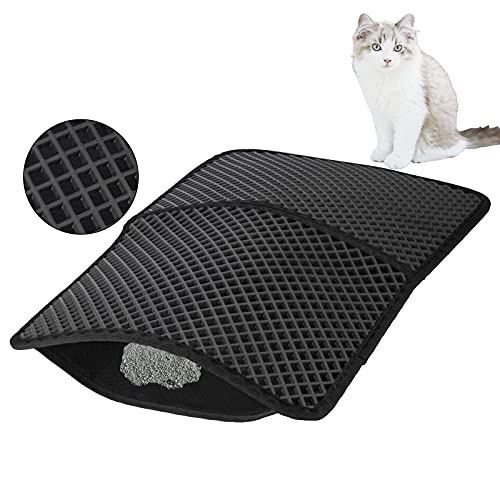【EFFICIENT HONEYCOMB DESIGN】Double-layer honeycomb litter trapper mat design helps you gather the litter. They fall through to the second layer instead of being pushed onto the ground and then dump it back in the cat litter box for reuse.