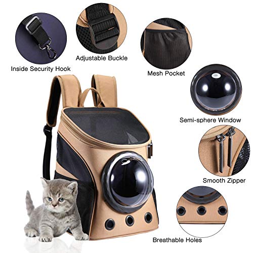 Built-In security leash stop them from escaping and keeps them safe in your care. 1 Mesh Pocket on the side of cat travel backpack, store pet necessities. With the soft plush mat ,the little pets can lying or sleep in this dog carrier.