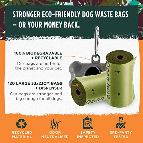 Yes, it’s a fact. Our 3rd-party tested and safety inspected 33x23cm Dog Waste Bags are bigger, stronger and Earth-friendly – 100% biodegradable and recyclable Dog Bags that include a dispenser with metal lead clip!