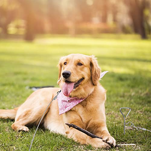 【Spiral Design & Easy to Use】Using spiral design at the end of the dog stake, you can screw the stake into the ground easily, then using the clasp to connect the dog cable with it , finally to attach the other clasp to your dog harness or dog collar, that is finished the installation.