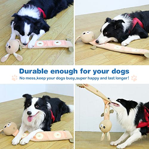 【Squeak dog toys crinkle & IQ Training】adorable rabbit design + 3 squeakers easily attract your dogs’ attention,they will have fun with our dog toys for hours,relieve their anxiety, and stop them from barking and damaging furniture.it is also the best dog toy for IQ and interactive training, you can not only get closer with your dog but also have more fun with your furry friend,it is easy to throw it out for fetching game with your pets.make your dog smarter.