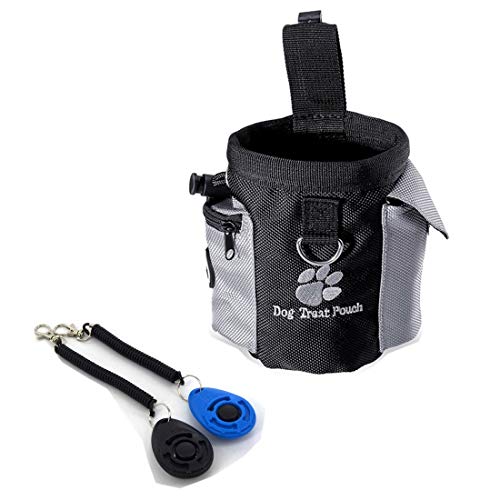 Dog Treat Waist Pouch Bag Hands Free Pet Training Food Storage Bag with Built-in Poop Bag Dispenser (Bag+ Clickers)