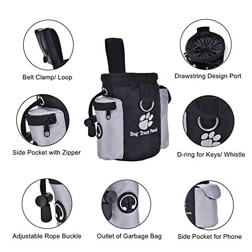 MEET ALL YOUR NEEDS: In addition to the main bag for storing food, the dog treat waist pouch bag has two pockets on sides, one is perfect for holding a mobile phone, keys, ID card while the other one is for holding garbage bags or poop bags. D-ring on front is perfect for attaching clickers, whistles, keys, etc.