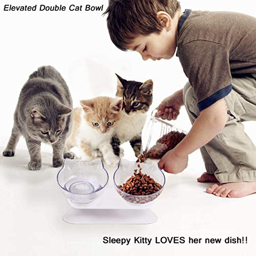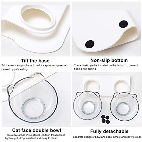 ✅✅【Stable Stand & Anti-Slip】The raised cat bowls with stand is made of environmental PC material ,can be used safely and safely. The stand is made of ABS material which is more durable and stable when using, anti-skid pad design, prevents slips and spill, protects floor. Features 4 non-slip rubber at the bottom to prevent the bowls from sliding.