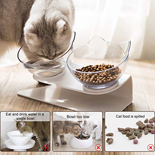 [Perfect design]: One side of the cat bowl can be used to store food, and the other side can be filled with water. The 15° design of the cat food bowl is very delicate, which can protect the pet’s cervical spine and reduce the pressure on the pet’s neck, joints or back.