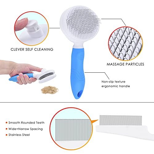 🦮【SELF CLEANING SLICKER BRUSH】Removes undercoat, dander, shedding mats, trapped dirt, and tangles hair from your pet’s fur just got easier. Massaging particles won’t scratch pet skin. Great for small & medium cats dogs and all hair types
