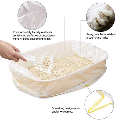 EASY TO USE: When ready for changing, just pull drawstrings of the cat litter bags. Easy pull drawstrings make cleaning up simple and easy, save your cleanup time, perfect for the busy household people. No dumping, no scraping, no fumes or holding your breath.