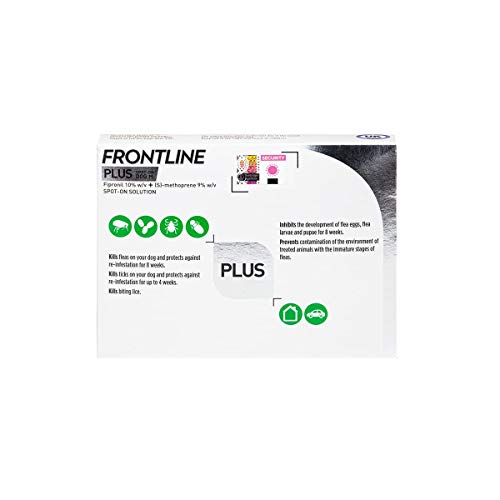 Frontline Plus is formulated with two tough killing ingredients; fipronil, which kills adult fleas and ticks and the added extra benefit of (S)-methoprene which attacks flea eggs and larvae.