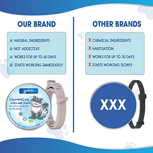 SAFE AND ECO-FRIENDLY: GADULU calming collars use natural ingredients to eliminate your cat’s anxiety, stress, fear, or aggression. The pheromone collar works as a proven relaxant to help with the vet’s visit, being home alone, fireworks, or thunderstorms. Rest assured that your pet will be safe and healthy with this collar.