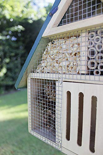 EASY-INSTALLATION – These insect houses can be free-standing within the garden or easily mounted to any fence or tree, allowing them to attract and accommodate multiple species of butterfly, moth, ladybird and solitary bees. Naturally improve the health of plants in your yard by attracting beneficial insects! The pointed roof has been fitted with sheet iron to protect the bee cottage from rain, so less moisture enters the wood.