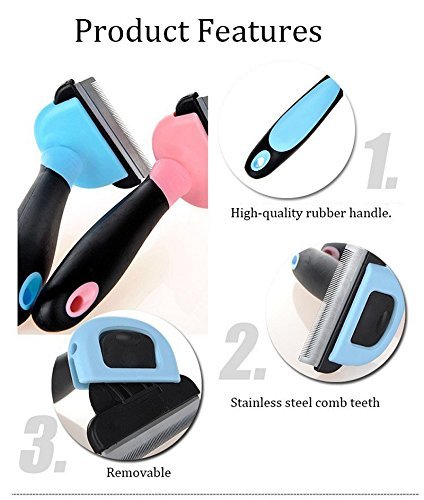 Hebey Pet Deshedding Comb, Pet Grooming Tool Brush Hair Removal Comb Grooming Tool Pet Grooming Brush Tool for Small, Medium & Large Dog Cat Small Animals with Short Hair and Long Hair (Blue)