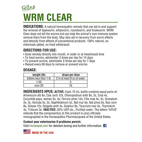 CAN AID IN AND SUPPORT THE REMOVAL OF TAPEWORM, WHIPWORM, ROUNDWORM, AND HOOKWORM. WRM Clear does not kill the worms but can help the animal’s own immune system remove them from the body.