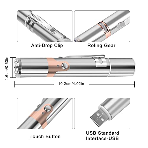 Upgrade 7 In 1 Design: The LED light pointer cat toy have 5 cute patterns like Red dots, butterflies, smiley faces, stars, mice and can be changed shape if required to attract your pet’s attention. Just turning the gears to change different patterns. The purple light can check urine stains and cat moss to ensure cleanliness and health. The flashlight mode can ensure the safety of you and your lovely pet during the night