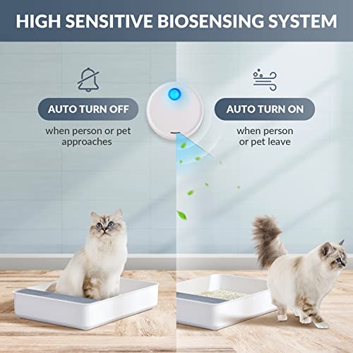 ♻️ [Smart Sensor & 2 Modes] Cat litter deodorizer built-in high sensitivity biosensor system. In automatic mode, the smart pet odor purifier will turn off quietly when the deodorant box detects people or cat within 3m to prevent the cat from being scared, and automatically turn on after the cat leaves. In manual mode, the deodorizer will continuous to work for 20 minutes and then switch to automatic mode.