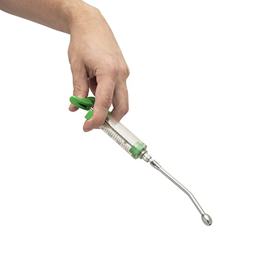 Stress-Free Drenching – Our syringe drenching gun has a long chrome drencher tip, allowing you to deposit liquid medication direct to the animal’s throat, behind their teeth, to prevent biting or spitting. No stress, less waste, and fewer acidents.