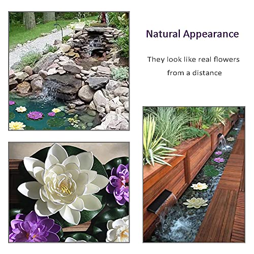 Practical Decorations: These artificial lotus flowers are not affected by the season, they can be decorated throughout the year, and some people who are allergic to pollen can also appreciate up close. Floating water lilies and lotus leaves not only increase the vitality of the pond, but also shelter the fish from the sun and protect them from birds. Easy maintenance.