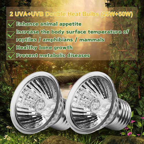 【E27 Holder & Double Heat Bulbs】 Tortoise heat lamps use one of the most common E27 lamp sockets you see in your home. There are 2 light bulbs 25 & 50W lamp You can easily find a suitable light bulb to use with.