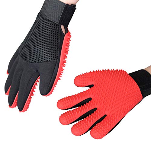 Eco-friendly: Free from any materials which could cause skin damage; Soft rubber ensure gentle massage and grooming without painful removing of fur or scratching the skin; One size fits all, it has adjustable wrist strap for a comfortable fit