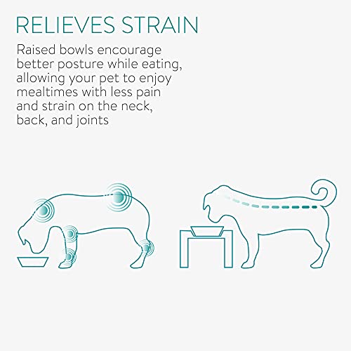 RELIEVES STRAIN: As pets get older, bending down can cause them pain. Don’t take away the joy of feeding time. Help relieve any strain on their muscles with this raised feeding station featuring a tilted bowl holder to ease discomfort while eating.