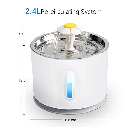 Holds 2.4 litres of water, keeps your cat or dog hydrated and provide fresh, flowing water all day