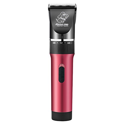 Otstar Rechargeable Cordless Low Noise Pet Hair Clipper,Professional Electric Pet Grooming Clippers for Small Medium Large Dogs Cats and Other Animals, Pet Grooming Kit Set (Red)