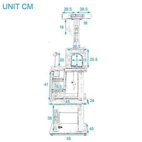 MULTI-PLATFORM: The multi-level design allows your feline friends to freely jump, climb and explore around their cat tower. This cat tree features comfortable condo, multi-platform and dangling toys, it provides plenty of room for your cats to enjoy themselves and keep your cat active and entertained. Easy to assemble with step by step instruction and tools included. Cat tower cat activity tree tall cat tree small