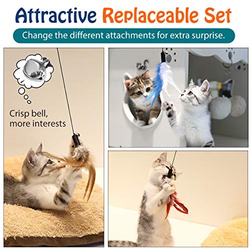 【3 Feathers Accessories】: The package contains three feather heads of different colors, which can be quickly removed and replaced by rotating the buckle. Convenient and quick! The bell collide and make a crisp sound in the process of feather rising and falling, which can attract the cat’s attention and create more fun.