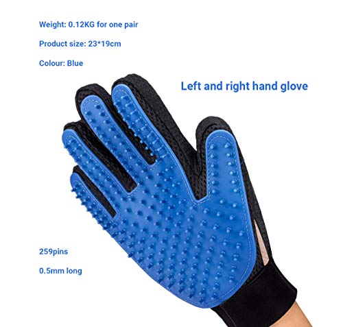 Universal Fit: This cat glove hair removal comes in a medium 23 x 19cm size that can be used by women and men alike. The set includes 2 gloves for the right and left hand respectively. They come in a plain black color with blue silicone padding that is very easy to clean.