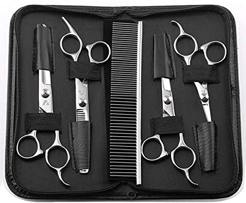 HIGH QUALITY GROOMING SCISSORS: This dog grooming scissors kit made from hard Japanese 9CR13 high carbon stainless steel. Coated titanium and cold treatment for hardness, durability, each blade comes with razor sharp edges, scissors finished with smooth surface. Suitable grooming for a variety of animal.
