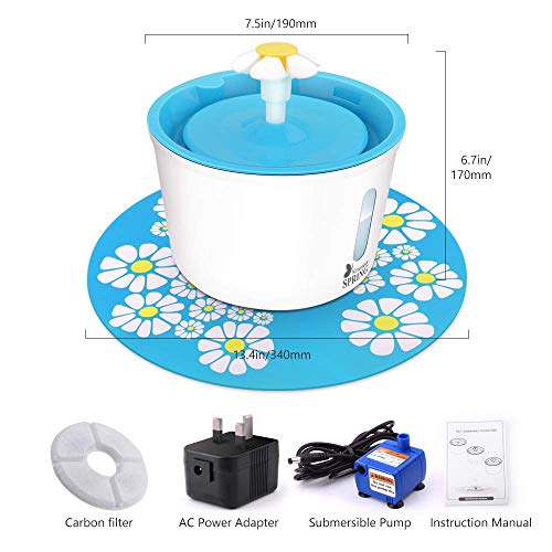 SAFE MATERIALS: November Spring pet water drinking fountain is made of finely polished antibacterial PP resin materials. With food-grade certification, it is BPA-free, non-toxic and odorless. Cylindrical design prevents overflow and spills. Further, it is featured with a transparent and visible groove as water level, which helps remind you to add water in time when there is little water. Also it’s easy to remove snap-fitting filter mesh and filter tray for cleaning.