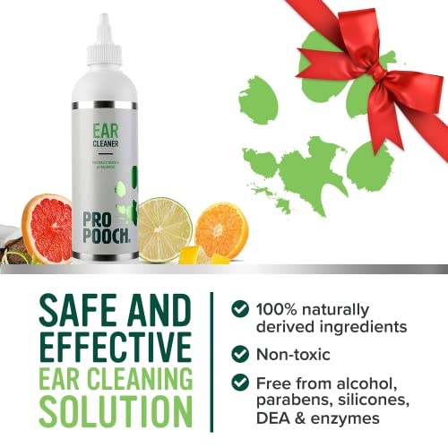 Pro Pooch Dog Ear Cleaner (250ml) – Drops to Stop Head Shaking, Itchy & Waxy Ears – Vet Recommended, Naturally Derived, Non-Toxic Ear Cleaning Solution for Dogs.