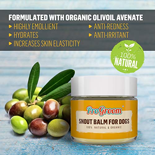 🐾 100 % NATURAL INGREDIENTS and proudly MADE IN UK 🇬🇧 : ProGroom snout soother uses among a variety of organic essential oils and butters, OLIV OIL AVENATE, a surfactant with noticeable emollient, protective, calming and soothing properties for the skin.